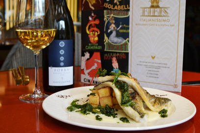 Sea bass fillets, sautéed kale, Prosecco and tarragon cream paired with the Alois Lageder Forra Manzoni Bianco.