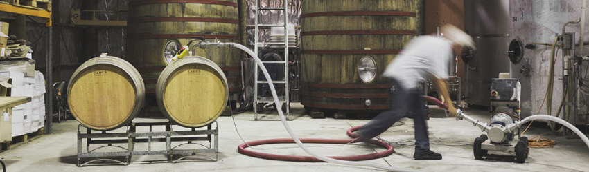 Above: wine being transferred into French oak barrels for fermentation and maturation at Huia vineyards.