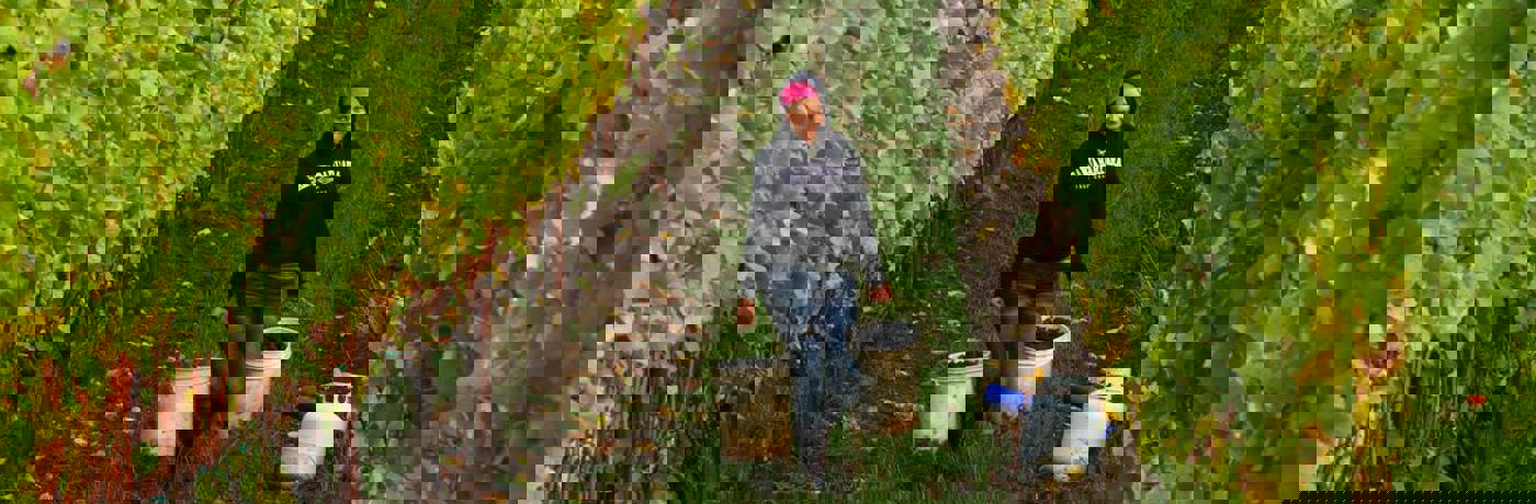 "The fruit quality was so great this year that the sorting table seemed nearly obsolete," says Tyler Shettell, Operations Manager. What turned out to be a great harvest started somewhat shakily, with a cold spring marked by heavy rain causing concern. "We didn't see a day over 20 degrees until mid-June," he explains, "which is very unusual for us here in Prince Edward County." Given the slow start, the Norman Hardie team made the decision to reduce yields to just under 2 tonnes of fruit per acre, in order to ensure ripeness.