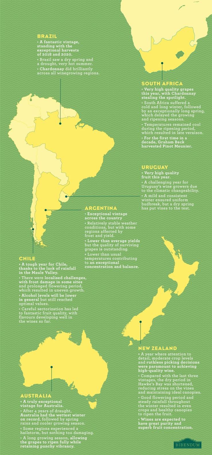 See the map below for a snapshot of the Southern Hemisphere - or read our individual harvest reports for more details: