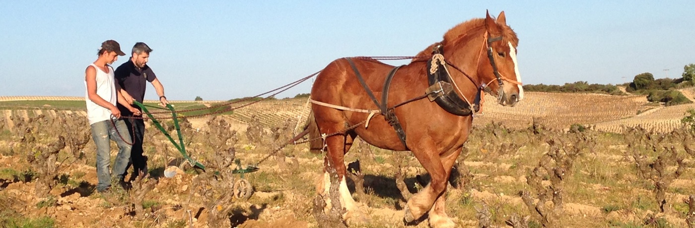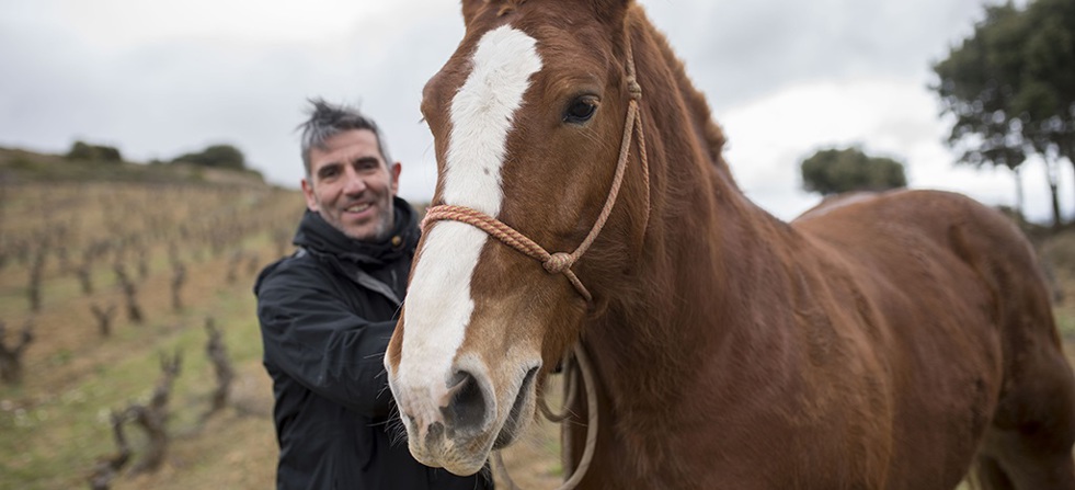 David alongside one of the horses he uses to farm his vineyards