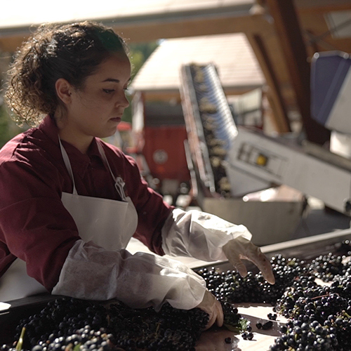 Manually sorting through the grapes at the winery